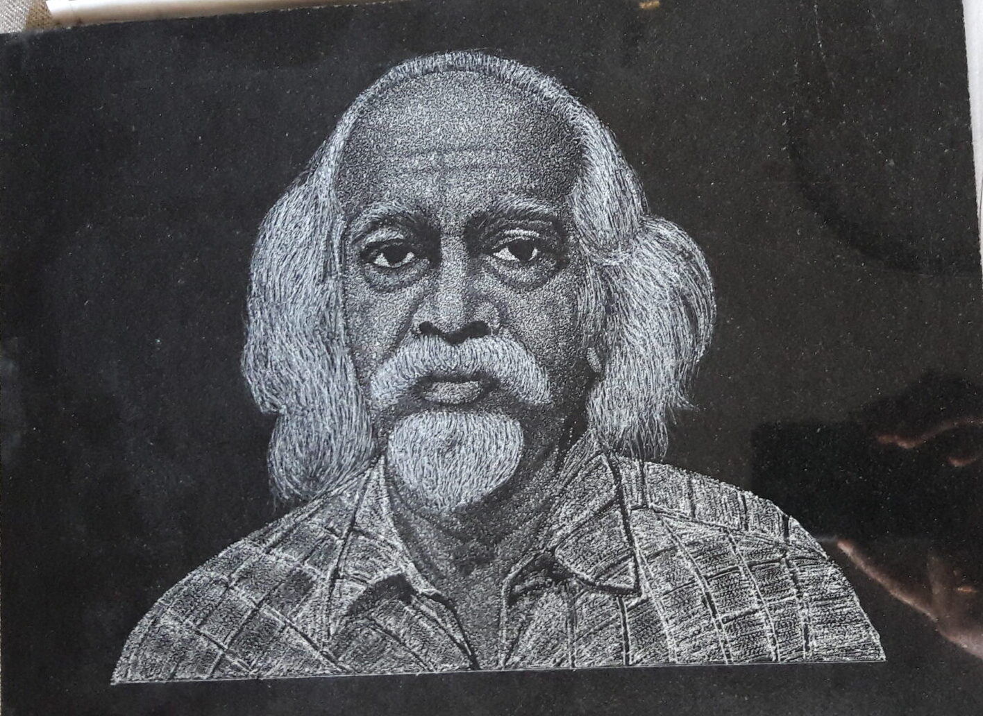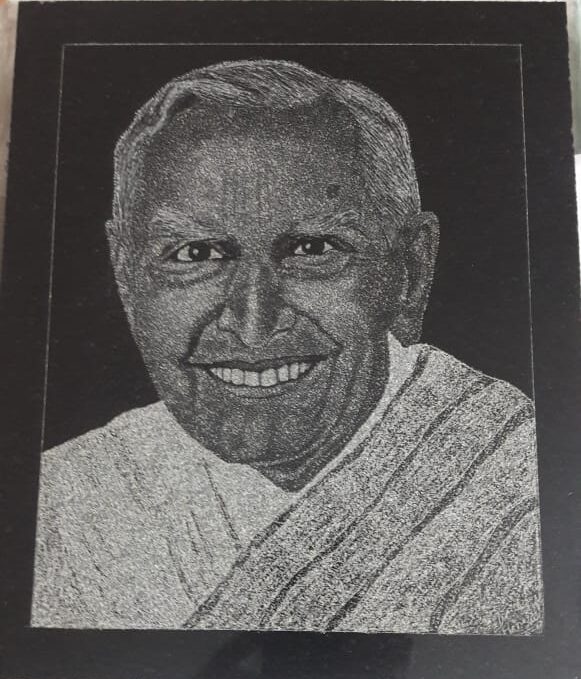 Few people can have it in them to be as gifted as Narendra hanswal. Narendra’s engravings include the last Supper, Jesus Christ, Mother Mary, Mother Theresa, Loard Krishna, Dhirubhai Ambani, Rajasthani ladies and a host of other gods, goddesses, personalities and paintings. “The Last Supper’ took me sixteen days to complete”, he says, “While a family tree involving twelve generations of the Sawwardekars took me four-and-a-half months to complete.
