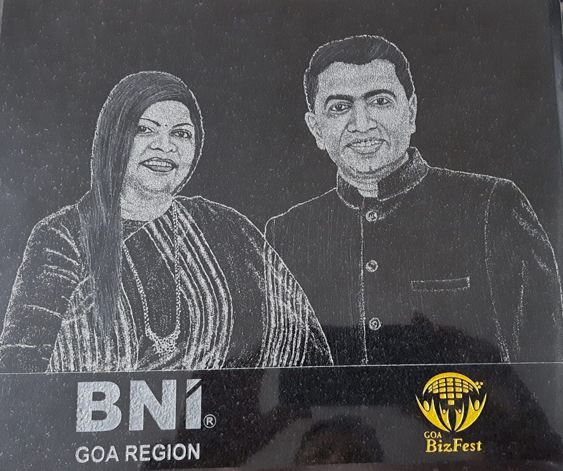 He has a remarkable tale to tell on how he stumbled into this profession. “Actually 1 have always had an inclination this proffesion. :Actually I have always had an inclination towards drawing, and pencil portraits were my forte. Although I have no formal training, asa a BA graduate, I pursued art as a hobby. On completing my education I entered the marbles industery and them made a foray into mining. One day on entering the Navelim cemetery, I was amazed to see a stone Portrait which has been brought from Paris. I was so wonderstruck on seeing it that I felt that if the person who had done it could do it so well why for Narendra. Most of his work is accomplished in five to seven days, but the time it taked longer . He works on black grannite and has been in the sculptingbusiess for the past nine years. However there is much more to Narendra that meets the eyes. A talented singer who has mesmerised many an audience, he is also skilled at playing the banjo and mouth organ.